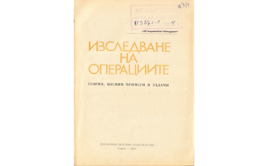 ИЗСЛЕДВАНЕ на операциите. Теория, военни примери и задачи. - София : ДВИ, 1975. - 440 с. ; 25 см. : 6.60 лв.; УДК: 519.685